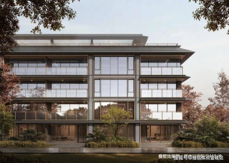 建筑风格:融合新中式元素与现代材质,外立面采用干挂石材、玻璃幕墙、铝板等,体现东方美学。