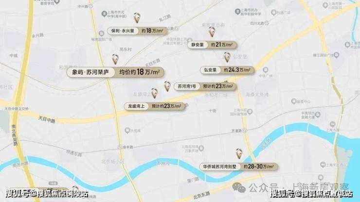 项目周边繁华商业云集,满足吃,喝,玩,乐购一站式高阶生活需求。直距700M有约16万方静安大悦城、静安最大的滨水苏河公园和商业综合体万象天地。