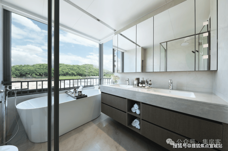 在春来晴翠园 建面约169㎡晴翠户型中,最亮眼的设计显而易见—— 主卧90°转角窗,揽获270°环幕视野,将天光云影尽纳室内。不仅引入绝佳采光与风景,更成为一处心灵栖所。