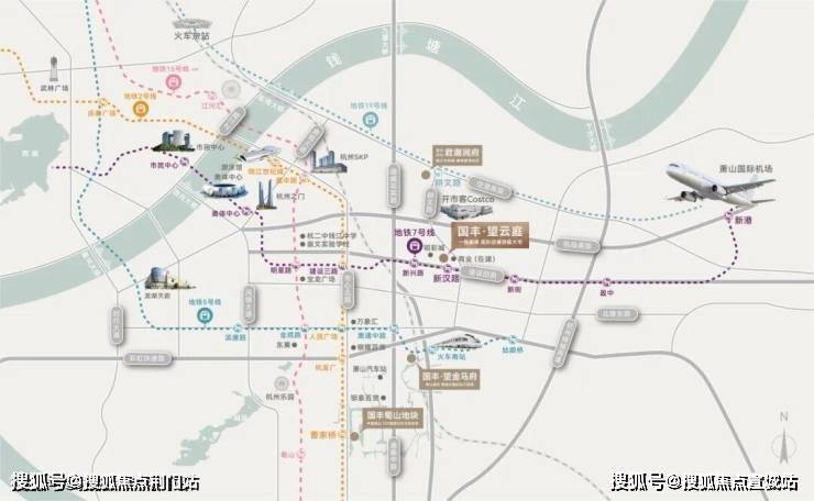 此外,项目还紧靠建设四路,速连滨江和萧山主城,到萧山区政府的直线距离不过约4.5km,离机场高速和通城高架仅约1.8km。无论是杭州主城的繁华盛世,还是钱塘江时代的城市封面,或是国际盛会聚集的丰盈舞台,都是国丰·望云庭的未来主场。
