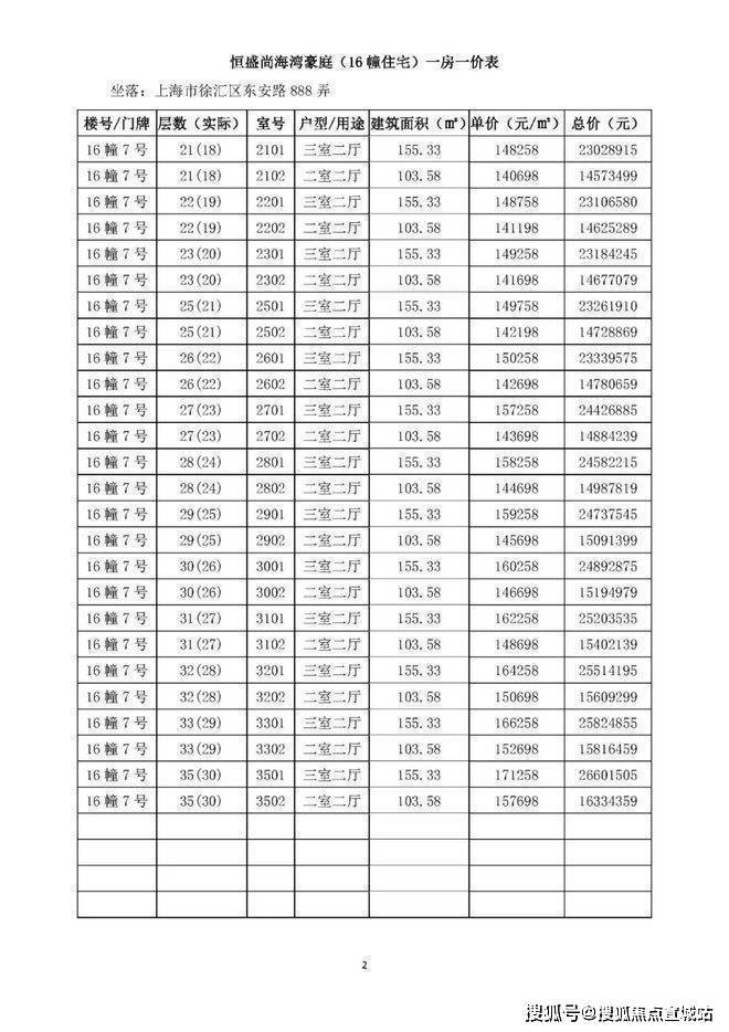 一房一价表如下: