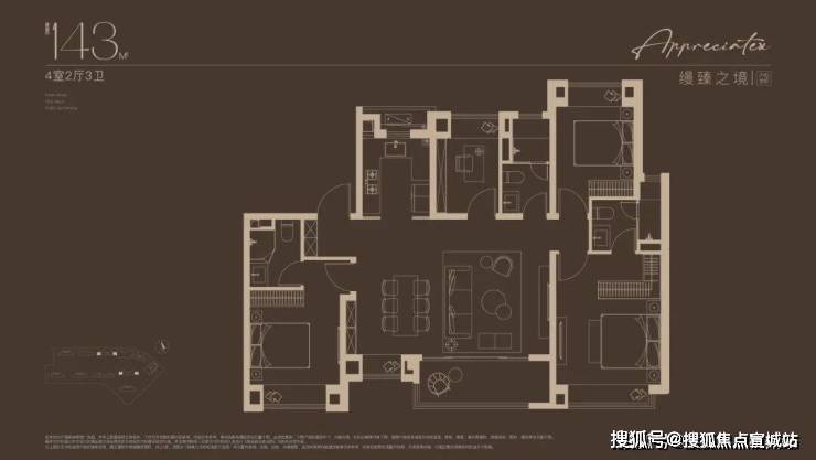 建面约143㎡四房设计,不论是三代同堂还是二娃家庭,都舒居无忧!2梯2户的设计,极具私密性的入户门厅,彰显大宅归家礼序。独立玄关,既是归家仪式感,更添收纳空间;约14米朝南面宽,搭配约7米尺度横厅,尽显大宅风范;东西双套房设计,奢享全龄世家的静谧时光。