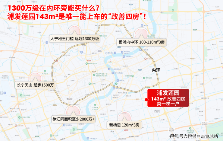 当同价位在新杨思只能入手120㎡三房、杨浦内中环仅够买110㎡三房,大宁/天山/徐汇等核心区甚至无房可选时,浦发莲园约143㎡四房以1300万级总价,成为内环旁唯一能同时满足「四房功能+品质改善」的臻稀选项。