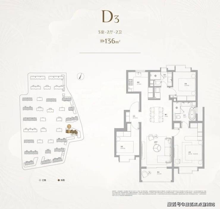 建面约136㎡3房,爆款中的爆款。南北通透的无连廊飞机户型,在设计感上真心出色!而且在整个中环沿线,建面约130-140㎡的房源是供应最稀缺的!