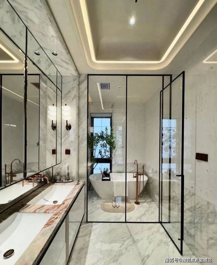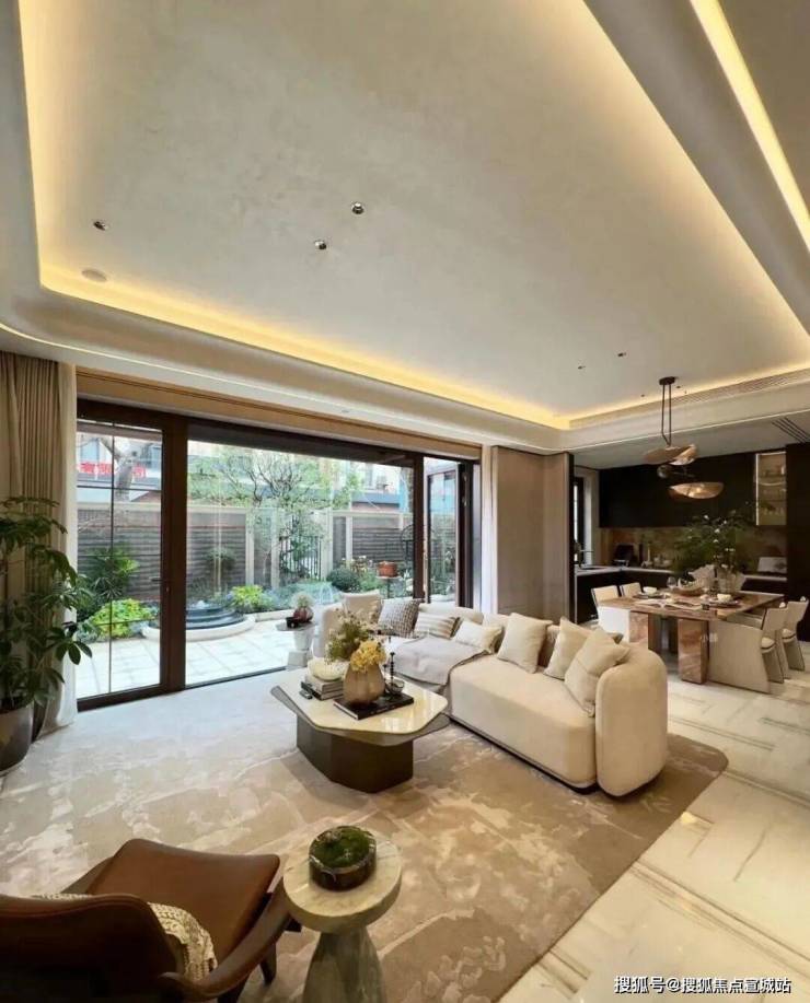 一楼面向庭院全景大玻璃落地窗真正意义上实现借景入室,是空间互融更是诗意盛放,客餐厅等空间集中于南侧于风景的相拥中宽享知味时光,至享生活浪漫。