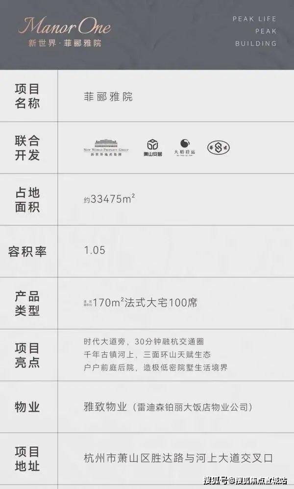 菲郦雅院售楼处电话:400-877-8334浙江新世界继杭州之门东塔OPUS ONE之后 ONE系列又一扛鼎续作Manor One菲郦雅院,落子杭州南部河上古镇,临时代大道,筑奢雅墅区,敬献杭城峯层人物。
