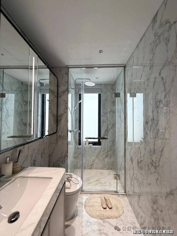 地面同样选用更昂贵却更美观的大块岩板,这种反常规的选择,不仅是视觉上的震撼,更以岩板的特性宣告着美观与实用的和解。
