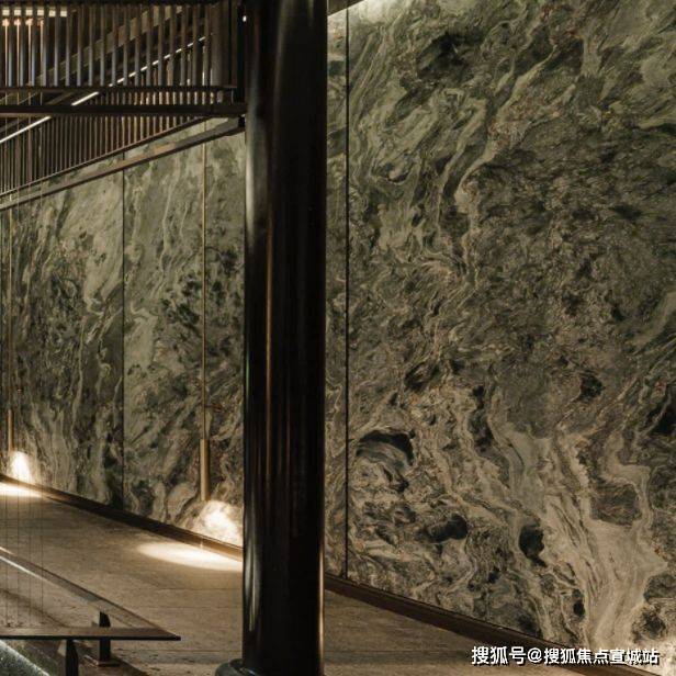 久映颂月府的投入远不止这些奢石、古树,从排屋建筑外立面也能看出一些隐形成本,伊朗进口的蓝眼睛石材,大面积落地玻璃,香槟色铝板,就连北向立面也是如此。