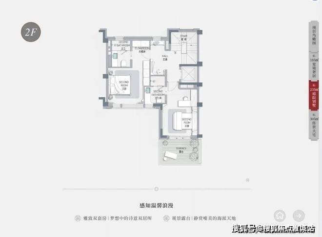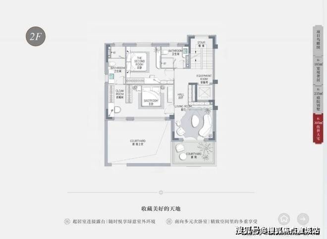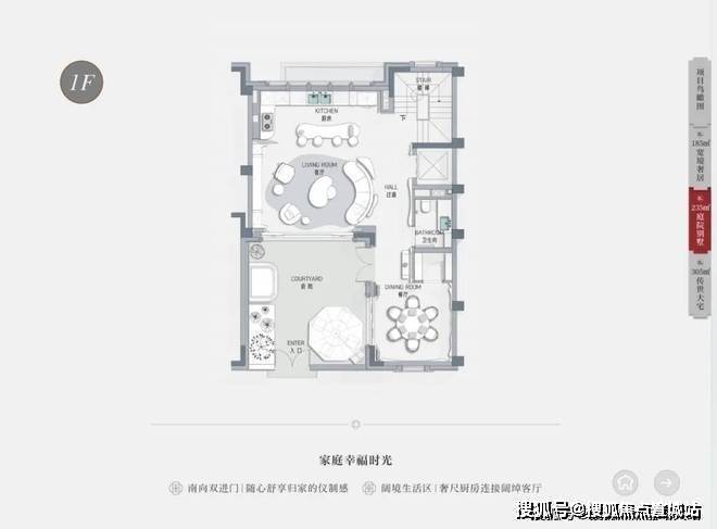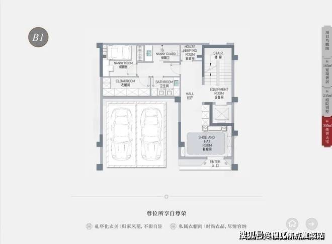 户型面积:有建面约185㎡、205㎡、235㎡、305㎡的联排别墅户型,均赠送地下室、花园、露台、阁楼等。其中,建面约185㎡户型总价约3350万-3620万,建面约205㎡户型总价约3450万-3720万,建面约235㎡户型总价约3850万-4500万,建面约305㎡户型总价约5850万起。