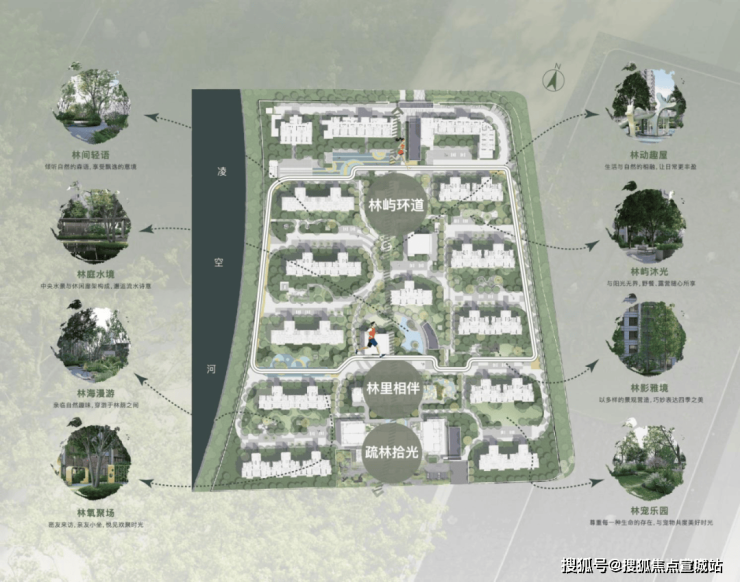 社区采用中轴对称的方式,形成以交流会客、儿童活动、休闲放松、户外运动等在内的“一园十境”特色场景景观布局,使得各个楼栋的景观分布和采光感受更均衡。