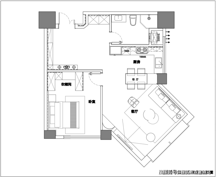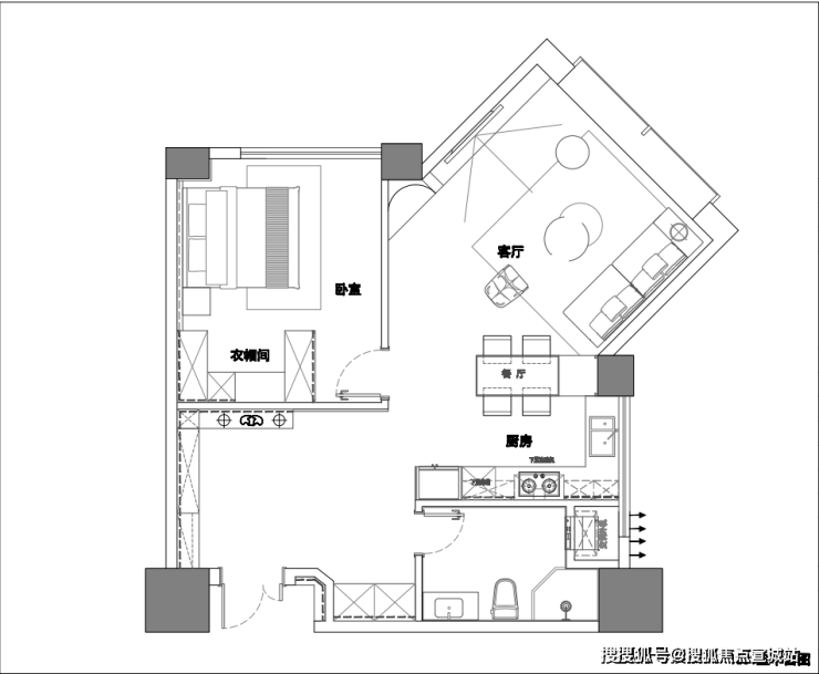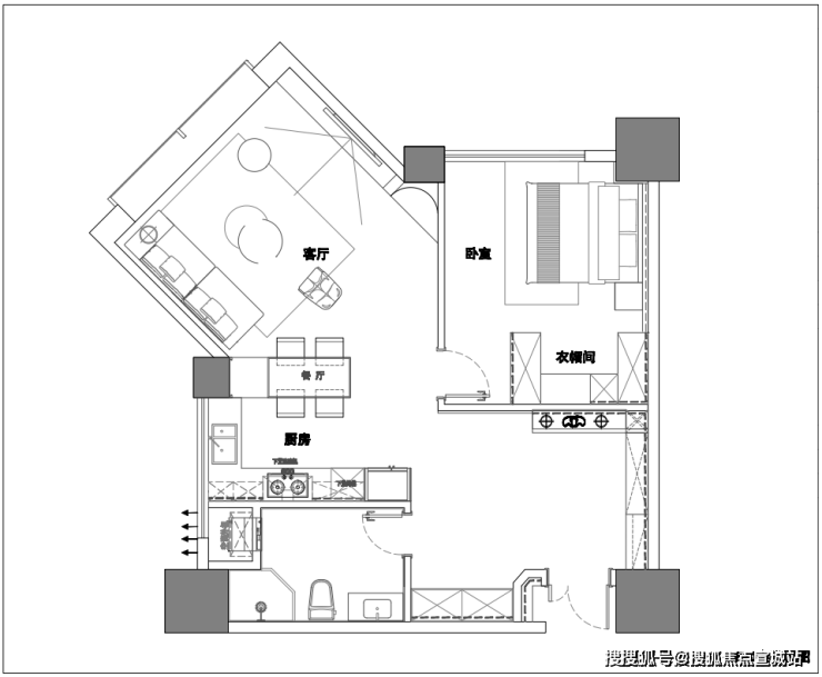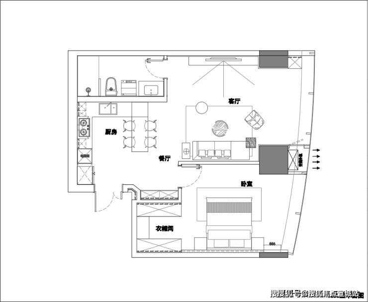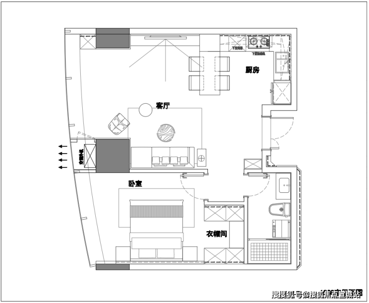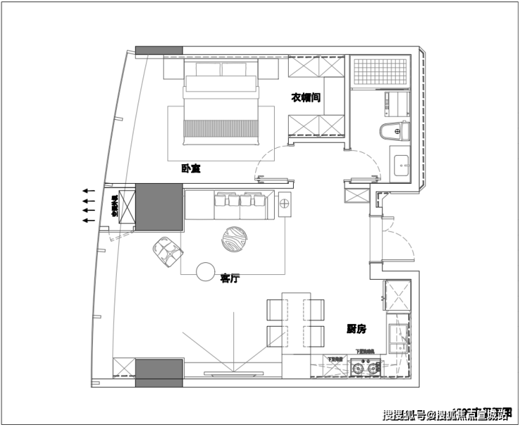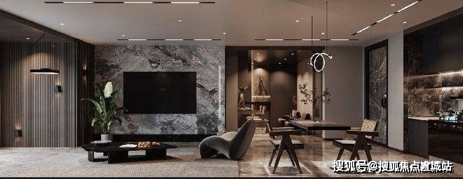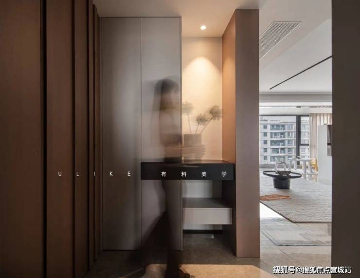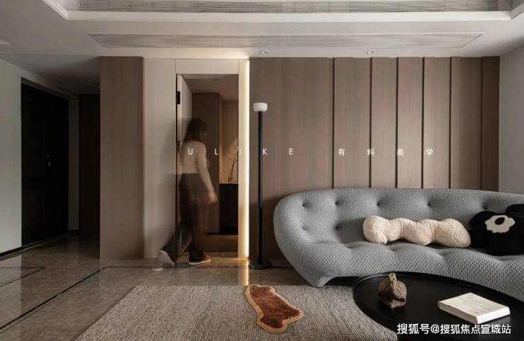 重新设计后打破原本结构,把鞋柜和次卧门与沙发背景连成一体,更简洁大气