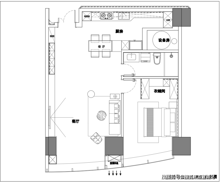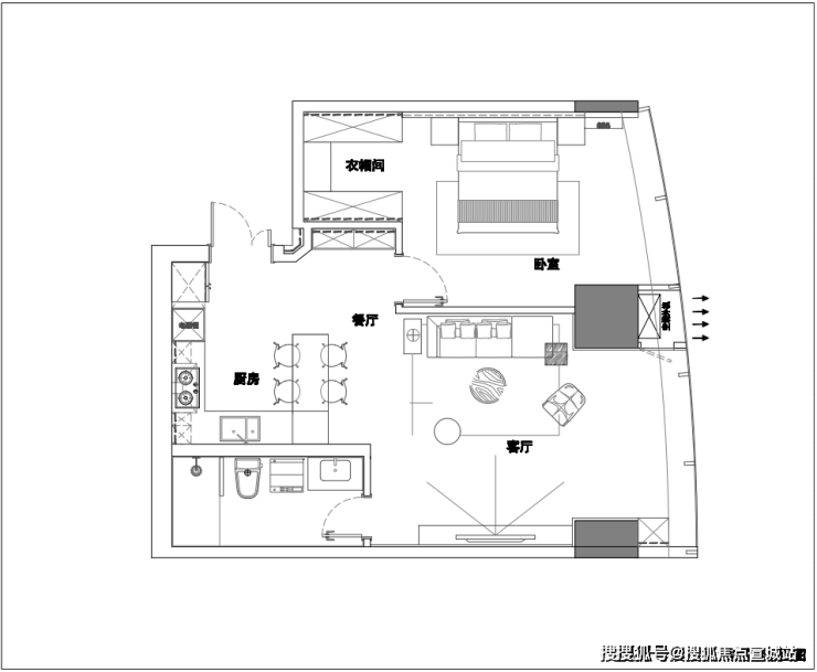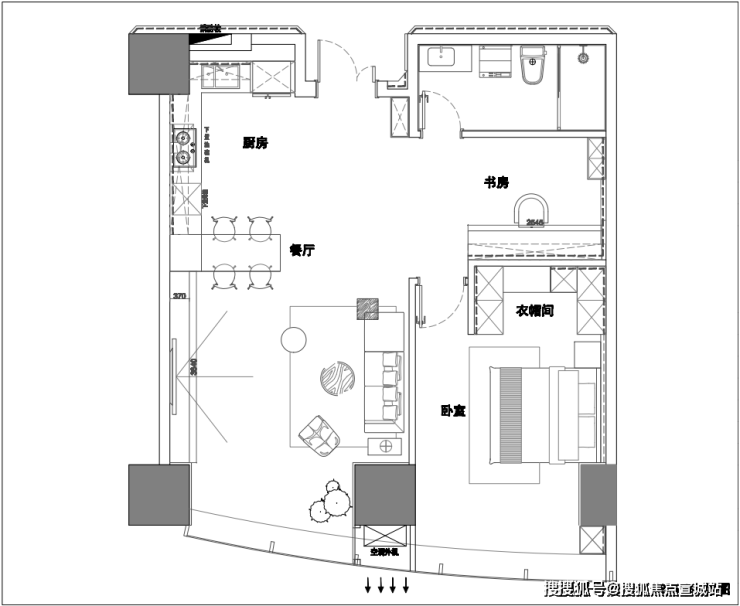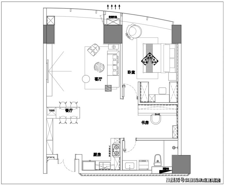 南北阳台打通,空间全部打开,成为客厅+餐厅+书房+水吧的整个公共生活系统