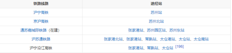截至2021年,苏州市区共有苏州站、苏州北站、苏州园区站、苏州新区站、唯亭站等5个铁路客运站及一个货运站苏州西站,除此之外郊县还有昆山站、昆山南站、阳澄湖站等3个铁路客运站。苏州站是上海铁路局直属站,是京沪铁路中办理旅客运输的一等站,位于苏州古城区北端外城河北岸。