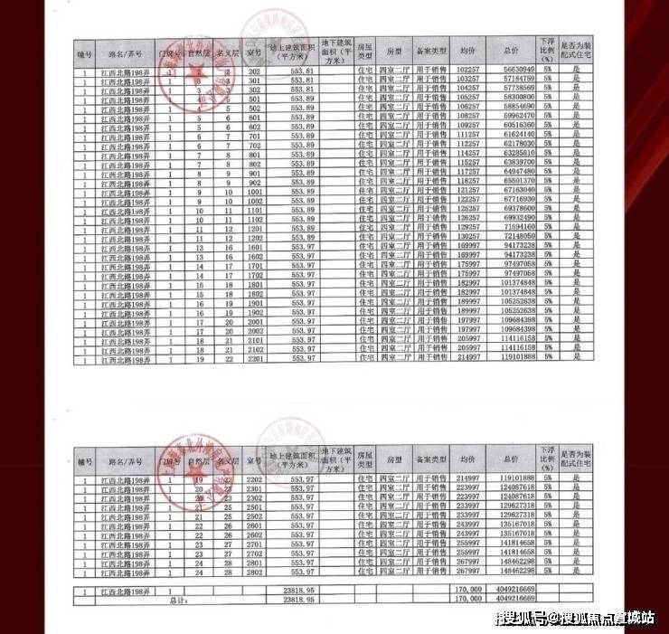 一房一价表如下: