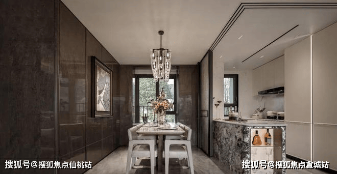 项目采用鎏金塔冠造型,灵感来源于国际邮轮港的曲线,流光美学的外立面,既有辨识度又有质感,是未来业主身份的象征。阳光倾泻而下,在不同光影与环境下,让家成为一件艺术品。