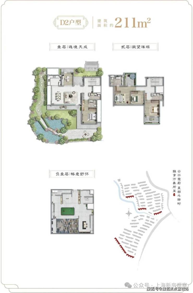 最新消息!朱家角淀山湖旁璟雲里超低0.41容积率纯墅区;少量建面约138-214㎡联排院墅,均价52501元/㎡!总价约660万起;产品全部地上两次,地下一层;一楼层高3.6米、二楼层高3.2-4米、地下层高5.7米(可做两次)花园50-200㎡,产品全为朝南户型;实体示范区&样板间现已开放!