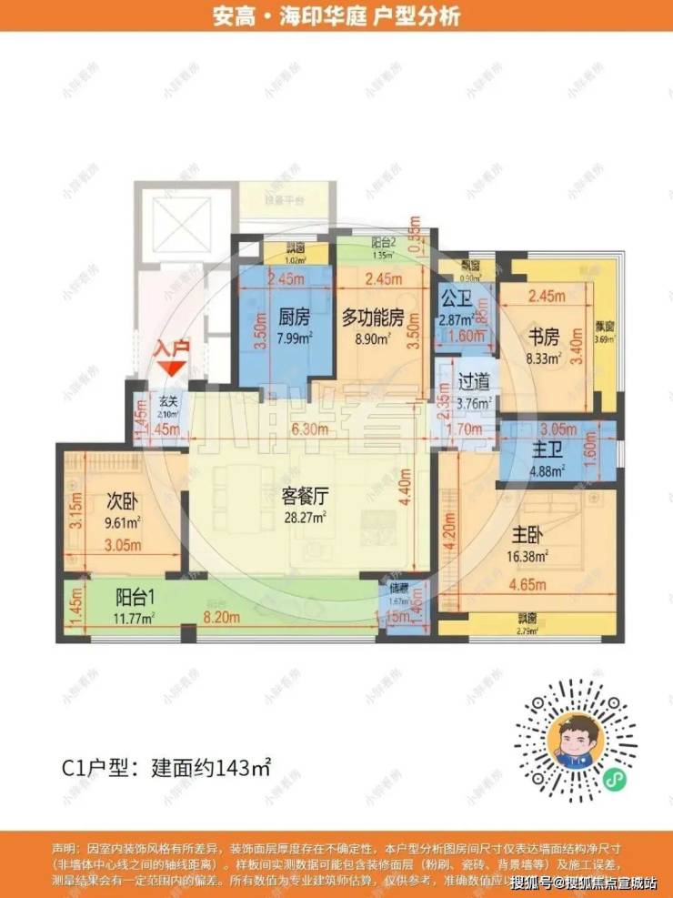 但事实上,安高·海印华庭建面约143㎡的实际使用率做到了约92.9%(小胖看房专业建筑师测算;最终面积以测绘数据为准)