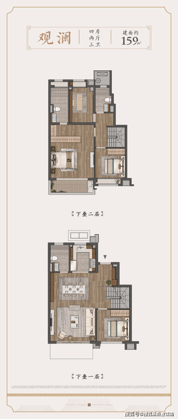 下叠建面约159㎡4房户型▼