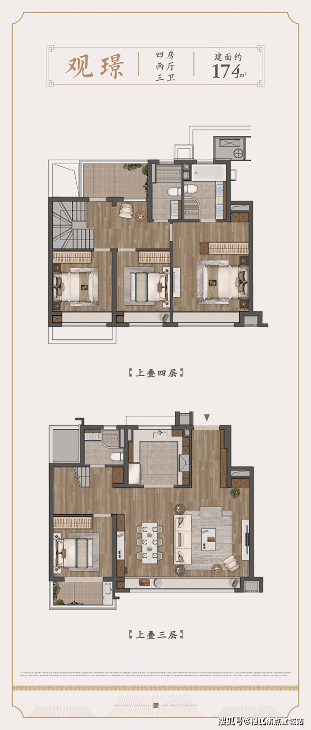 上叠建面约174㎡4房户型▼