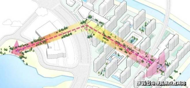 开放共享轴链接各个节点:生态运动休闲带,生态林荫大道,街区绿地;形成连续的绿色公共、半公共空间。并在绿地中注入国际文化特点的商业配套,形成尺度宜人的街道和建筑尺度。