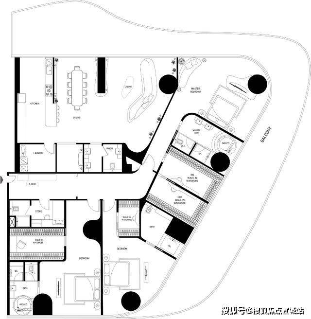 建筑轮廓从法国里维埃拉的海岸线与迪拜沙丘中汲取灵感,外观动感流畅,阳台如丝带般环绕楼体,呼应了布加迪跑车特有的流线造型。