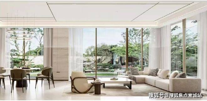 怀山望以曲面设计,搭配南向约0.6超高窗墙比,约270°环幕全景舱,消融室内外界限,阳光与风景自然涌入。