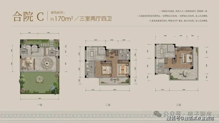 户型区间:中式合院建面 149 - 227㎡,叠墅建面 142 - 176㎡。