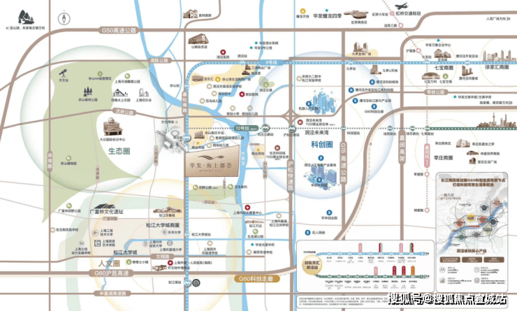 合心规划产城样板:【“科创+人文+生态”城市单元示范】华发海上都荟首入松江,携崭新“优+产品体系5.0”,为洞泾、乃至为松江带来目前区域内综合高品质作品。结合上海生态环境保护“十四五“规划,站位国际领先的可持续性项目规划,华发海上都荟结合自身的独特聚合优势,在传统TOD规划之上,不可复制的土地生态资源,向东链接G60科创走廊“以镇命名为区块”洞泾人工智能产业基地;向南直达亚洲大学城之一——松江大学城;北侧紧连上海陆面自然山林资源——佘山国家旅游度假区。板块将区域打造成为“科创+文教+生态”交汇的核心新城模式,划立一个崭新的城市单元示范。