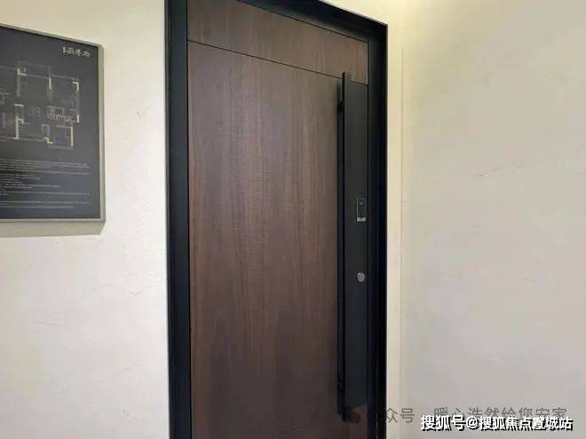 国誉府样板间做得是A户型建面约98㎡,入户门从外头看是深色的,转入室内,为了统一视觉效果,门内改成了浅色。