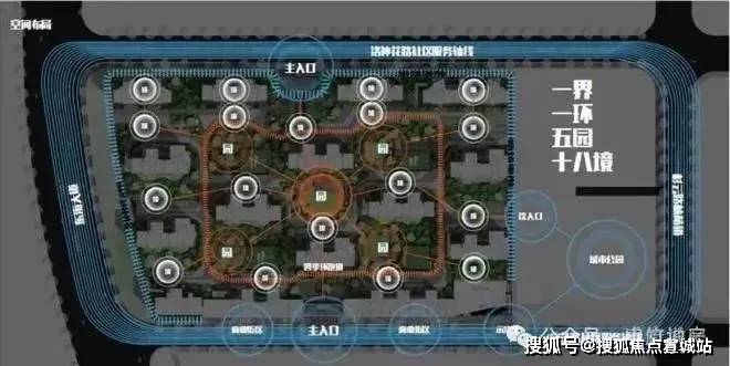 当然,为了更好的与这自然生态相结合,在社区内打造了一界、一环、五园、十八境的景观。