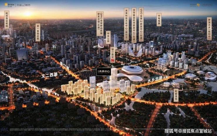 7.项目东侧未来科技文化中心,包括国际体育中心、国际演艺中心、会议会展中心、综合文化中心,是辐射城西乃至整个杭州的新一代城市公共中心。