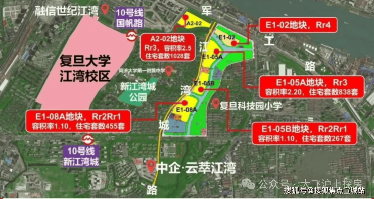 E1-08A地块位于新江湾城北侧,直线距新江湾城站约1.2公里,地块容积率仅约1.1,限高约20米,预计将是洋房和联排的组合。其土地面积约5.71万㎡,建筑面积约6.28万㎡,出让总价为37亿元,折合楼板价约5.89万/㎡,住宅套数下限为455套。