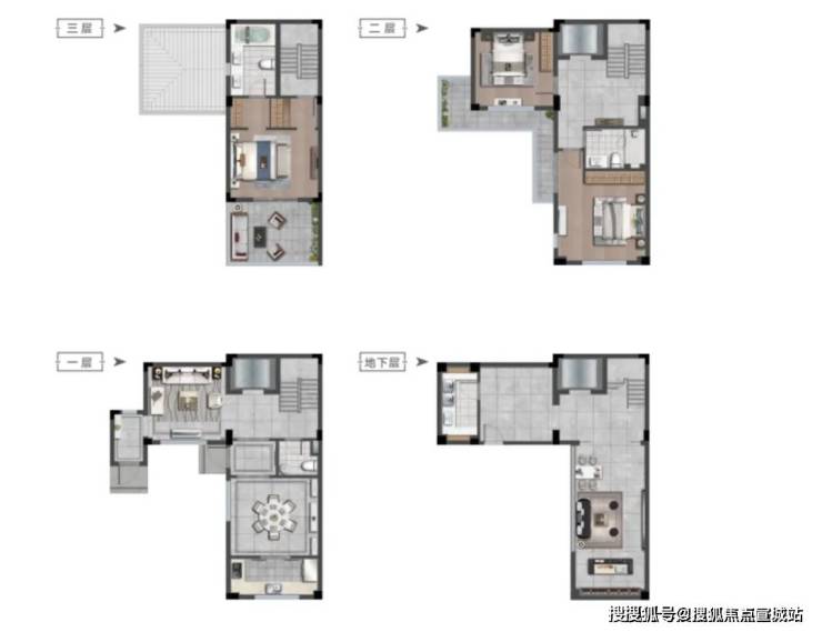合院别墅:建面约 148-175㎡,地上三层 + 地下一层,均价 29000 元 /㎡起,总价区间 400-900 万,毛坯交付。