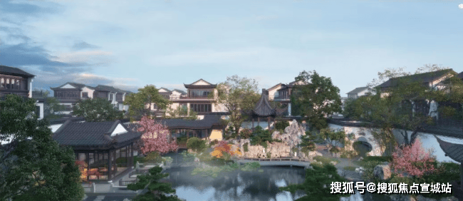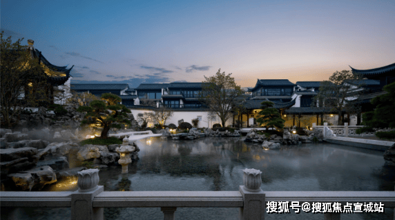 苏式园林风格,白墙黛瓦 + 庭院围合设计,复刻江南人居意境