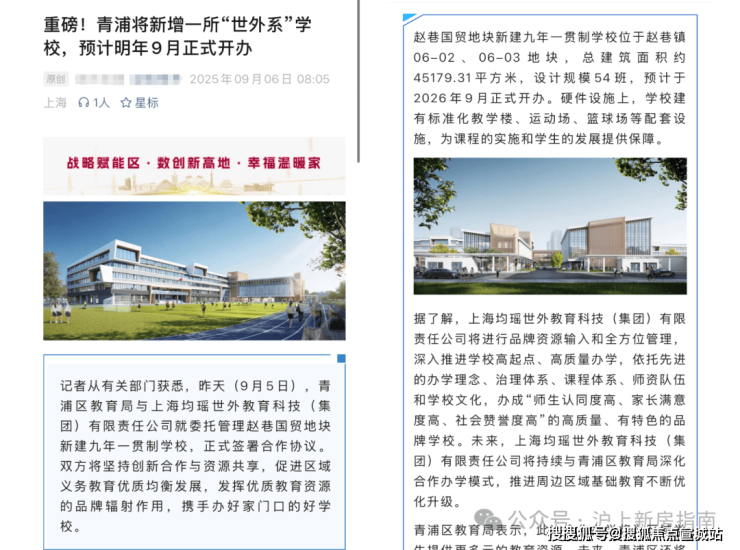 9月5日“世外”正式官宣落定赵巷,这所世外托管的公办九年制学校为国贸代建学校,与项目仅一路之隔,未来大概率对口。(期房不承诺学区,学区划分以教育局公布为准)。