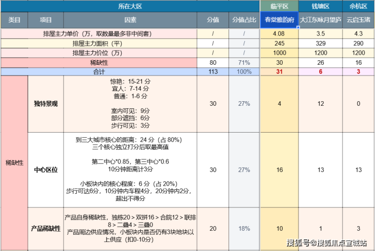稀缺性重点关注景观、区位、稀缺性三方面