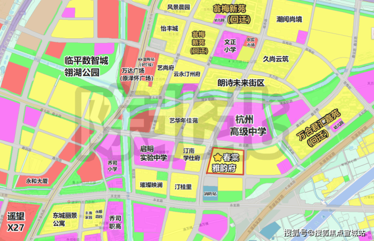 项目北面为杭州高级中学临平学校,旁边还有两块规划教育用地