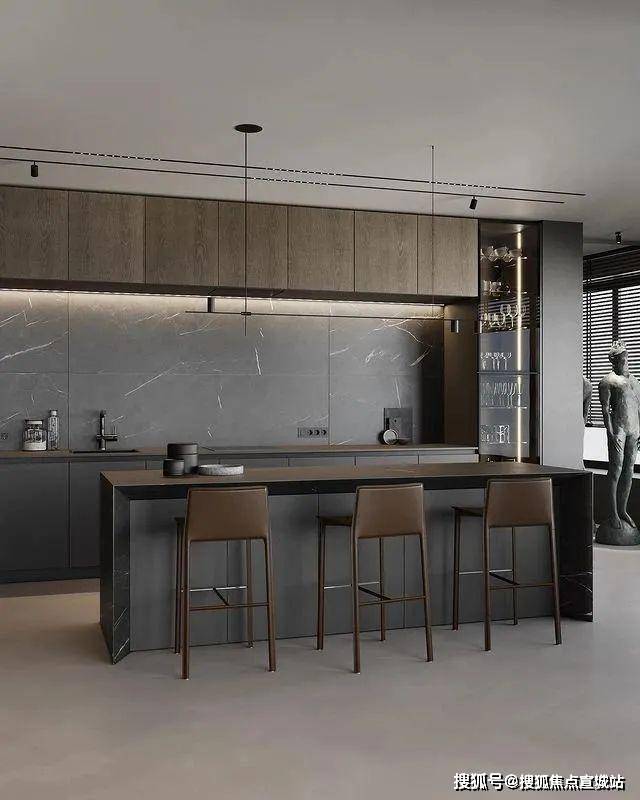 Thecustomambryinthekitchenwillreceiveafunctiontoacme,letapersonmarvel.Theislandusesblackmarbleveneer,andthedarkdiningchaircomplementeachother,creatingakindofcalmandnobleatmosphere,letapersonlinger.