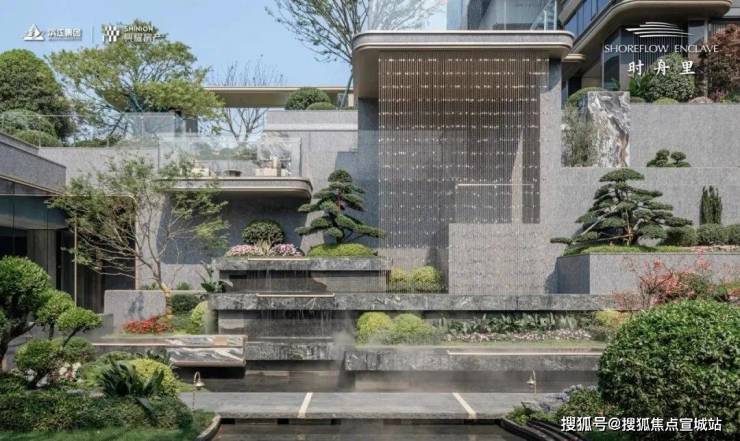 其中 下沉水院作为关键归家场景之一,以水为引,叠瀑飞流,对景廊架,还有风景连廊,搭配波光粼粼的镜面水景和绿植点缀,随手一拍,满满松弛感。