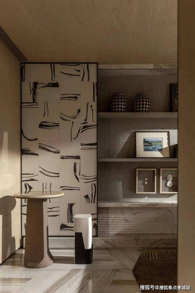 于是,设计师以“复古简约”风格铺陈全屋,就像王家卫电影里穿旗袍用智能手机的角色,矛盾产生故事性。