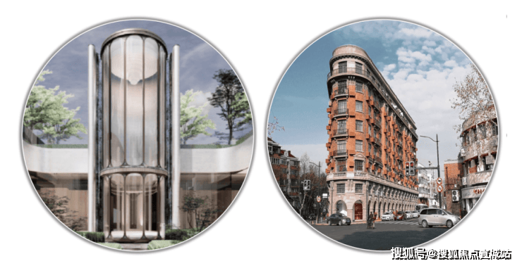 比如, 充满武康大楼元素风格的武康印象、参考徐汇公学建筑制式的会所入口、参考西岸美术馆设计的西岸艺廊……
