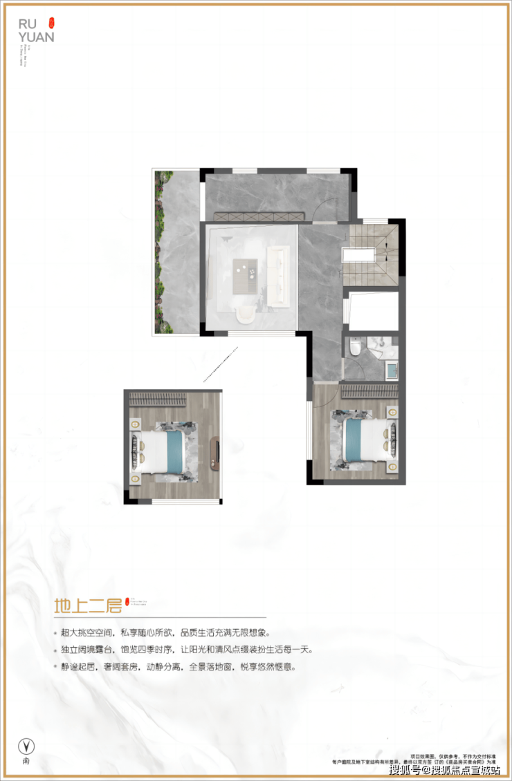 产品特色:作为纯低密墅宅社区,居住舒适度高。以147㎡合院户型为例,该户型方正、南北通透,地上三层地下一层,一楼带花园,二楼、三楼带露台,庭院挑空设计,地下室挑高约4.8米,空间利用率高。