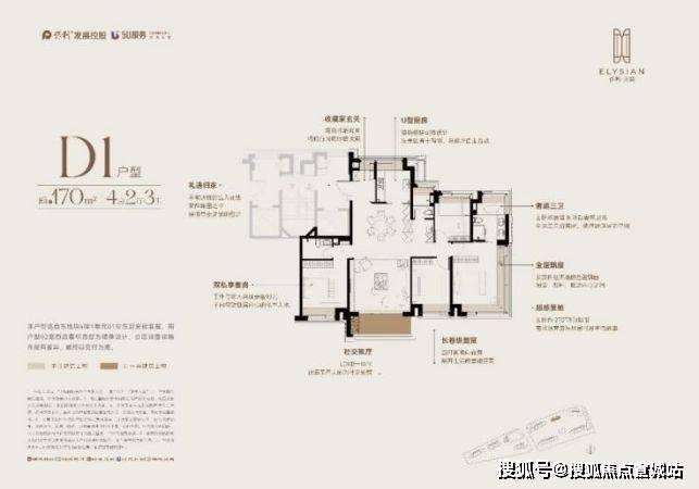 对于纯改善需求的量身定制,在前两个户型基础上,做了更尊奢的开间尺度。据说,保利前基于客户做了非常多的样本调研,所有亮点也能看到保利对于改善家庭需求的思考。