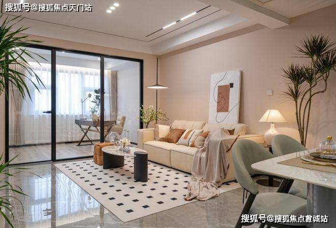 【客餐厅:温馨舒适的轻奢现代风格】客厅餐厅空间通透,串联成线,亲密互动,大金中央空调、德国威能锅炉地暖、诺贝尔品牌瓷砖