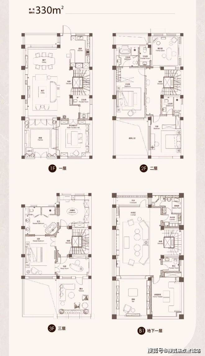 地上面积约180–660㎡,地下空间约为地上面积一半