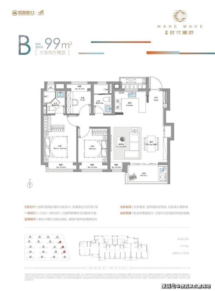 户型设计:全明通透、南北双阳台、动静分区,部分户型有270度转角窗