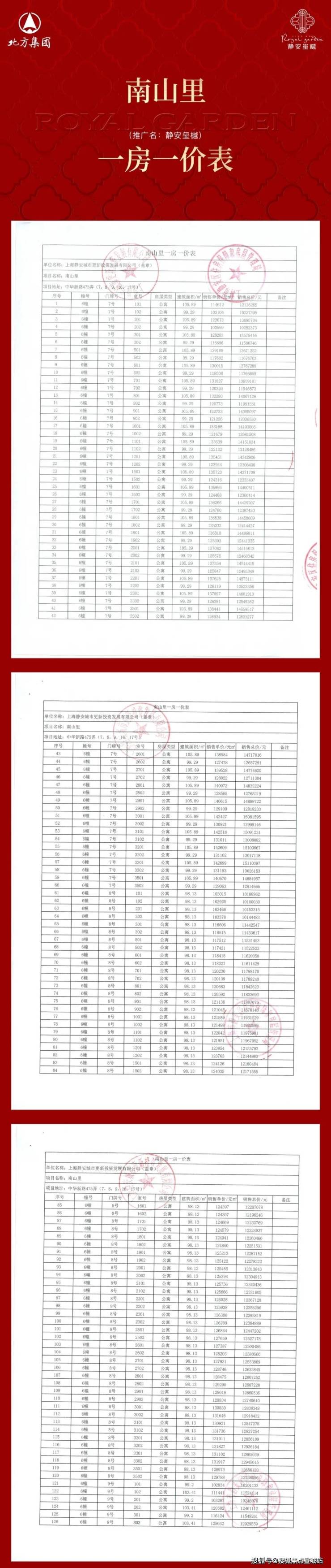 项目一房一价表