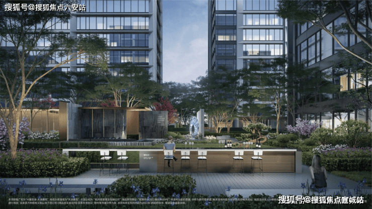 园林中还巧妙设置了水景环绕的下沉式卡座,灵感来源于巴厘岛Soori酒店,为业主提供露天社交的优质场所,在武林核心区创造出一片罕有的低密聚落大境视野。