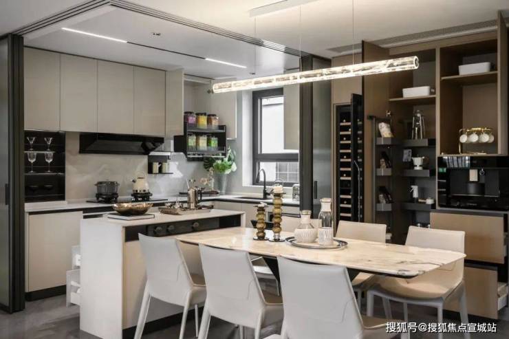 结合艺术玻璃移门,在提升空间灵动性的同时,也激发出餐厨空间生活的多样性。
