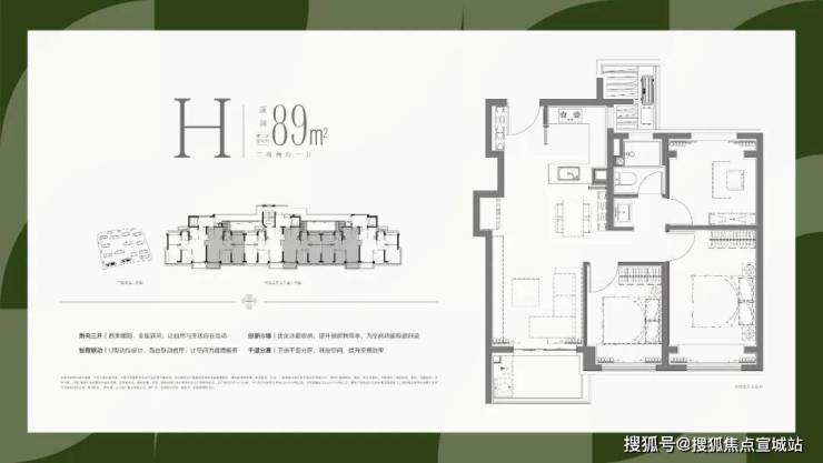 1、全部南向大面宽设计,保证最为出众的采光和视野需求;